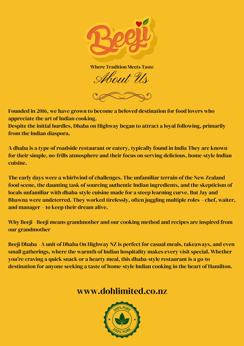At Beeji, a pure vegetarian Indian restaurant with desi looks located in New Zealand, we pride ourselves on our adaptability and commitment to excellence in every aspect of our service. We take utmost care for any dietary requirements. Explore what we have to offer and how we can contribute to your success.